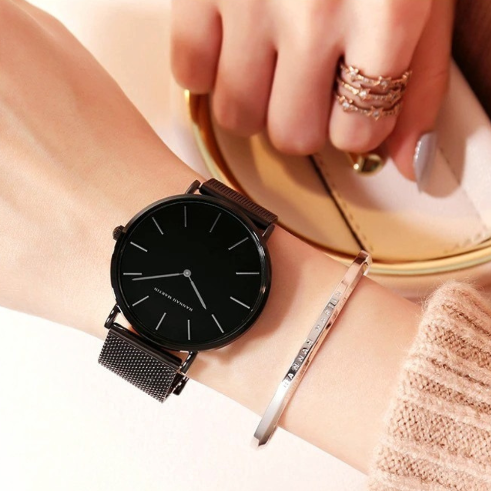 Elevate your style with the Hannah Martin Luxury Ultra Thin Watch. Featuring a durable, breathable stainless steel mesh band and precise Japan quartz movement, this sleek timepiece combines comfort and accuracy. Its minimalist design and secure double latch make it perfect for any occasion. Experience refined luxury and lasting quality with Hannah Martin.